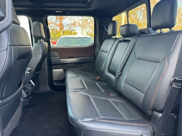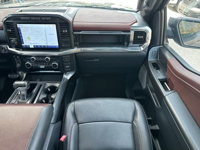 The stunning gray exterior, complemented by the chrome and dark accents, gives this F-150 Lariat a bold and sophisticated presence. Step inside and you'll be surrounded by premium leather-trimmed seats, a panoramic moonroof, and a state-of-the-art infotainment system with navigation and a premium B&O sound system.