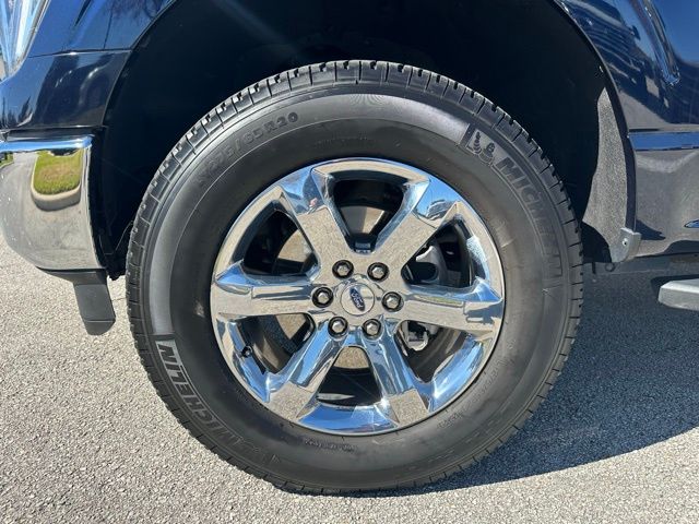 The exterior of this F-150 is finished in a striking Blue color, complemented by the XLT Chrome Appearance Package that adds a touch of sophistication. Inside, you'll find a spacious and well-appointed cabin, featuring premium heated cloth seats, a leather-wrapped steering wheel, and the advanced SYNC 4 infotainment system with Apple CarPlay and Android Auto compatibility.