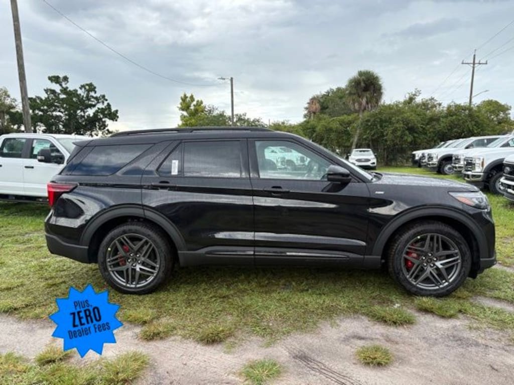 ZERO DEALER FEES, FOR FLORIDA RESIDENTS, FREE DELIVERY ANYWHERE IN THE STATE OF FLORIDA, ASK US FOR A VIDEO WALK AROUND OF ANY VEHICLE!, 110V/150W AC Power Outlet, 2nd Row Heated Seats, Ambient Lighting, Auto-Dimming Interior Rear-View Mirror, Equipment Group 300A Standard Package, Memory Driver's Seat, Performance Brakes, Power-Folding Sideview Mirrors w/Autofold, Premium Package, Rain-Sensing Wipers (Front Only), Red Painted Perf Front & Rear Brake Calipers, ST-Line Street Pack, Wheels: 21" Magnetite-Painted Aluminum, Wireless Charging Pad. 20/29 City/Highway MPG Agate Black Metallic 2025 Ford Explorer ST-Line ST-Line RWD 2.3L EcoBoost I-4