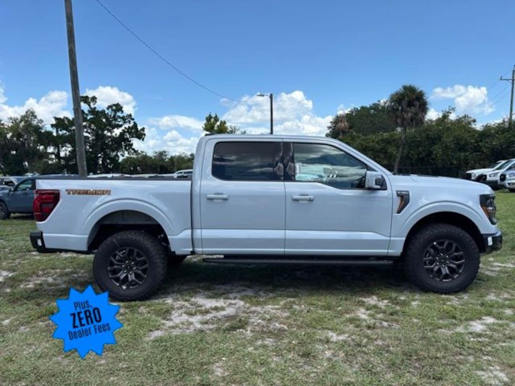 ZERO DEALER FEES, FOR FLORIDA RESIDENTS, FREE DELIVERY ANYWHERE IN THE STATE OF FLORIDA, ASK US FOR A VIDEO WALK AROUND OF ANY VEHICLE!, DEALER DEMO, 4WD, 2nd Row Heated Seats, 4 Pickup Box Tie-Down Plates, Ambient Lighting, Auto-Dimming Rear-View Mirror, Bed Utility Package, Console Worksurface, Electronic Locking w/3.73 Axle Ratio, Equipment Group 402A High, Front Axle w/Torsen Differential, Heads-Up Display, Heated Steering Wheel, Integrated Trailer Brake Controller, LED Box Lighting, LED Taillamps, Media Bin Door, Mobile Office Package, Modular Front Bumper & Carbon Black Rear Bumper, Partitioned Lockable Rear Storage, Power Glass Heated Sideview Mirrors, Power Tailgate, Power-Adjustable Pedals w/Memory, Premium Wrapped Steering Wheel, Radio: B&O Unleashed Sound System by Bang & Olufsen, Rain-Sensing Wipers, Tow/Haul Package, Two-Speed Automatic AWD w/Mechanical Locking 4WD, Unique Tremor Leather-Trimmed Bucket Seats, Universal Garage Door Opener, Wireless Charging. Space White Metallic 2025 Ford F-150 Tremor Tremor 4WD 3.5L V6 EcoBoost