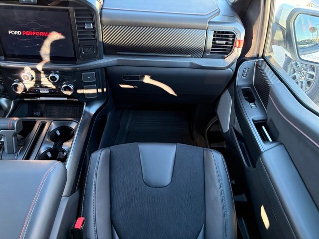 Step inside and you'll be greeted by premium Alcantara Suede RECARO front seats, carbon fiber interior accents, and a stunning twin-panel moonroof that floods the cabin with natural light. The Raptor's advanced technology package, including the SYNC 4 infotainment system, 14-speaker B&O sound system, and Heads-Up Display, keep you connected and entertained on every journey.