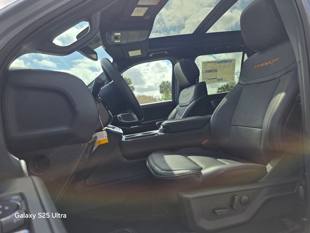 Inside, the Expedition Tremor offers a wealth of premium features, including heated and ventilated leather front captain's chairs, a heated steering wheel, and a state-of-the-art B&O sound system. The available Ford Digital Experience provides seamless connectivity, while the 10-speaker audio system delivers an immersive listening experience.